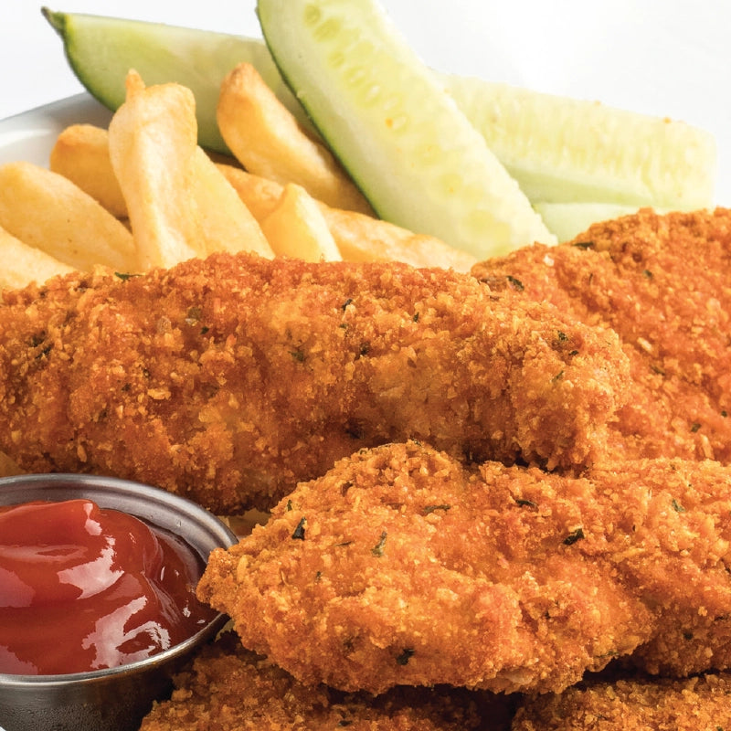 3) Dip Chicken first into egg then into corn crumbs, covering all sides, and gently shake off any excess. Bake or fry until golden brown and meat is fully cooked.