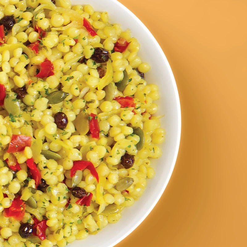 - Ingredients Pearl Pasta Couscous (Wheat Flour), Pumpkin Seeds, Dried Red Bell Peppers, Toasted Onions, Currants, Herbs, Spices. Contains Wheat.