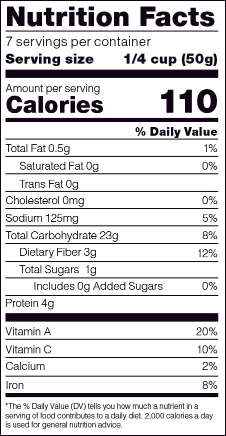 Pre-Seasoned blend of pearled farro, dried vegetables, & spices. Quick & healthy side-dish, just add water & boil.