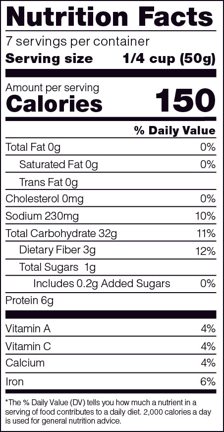 Pre-Seasoned blend of pearled farro, dried vegetables, & spices. Quick & healthy side-dish, just add water & boil.